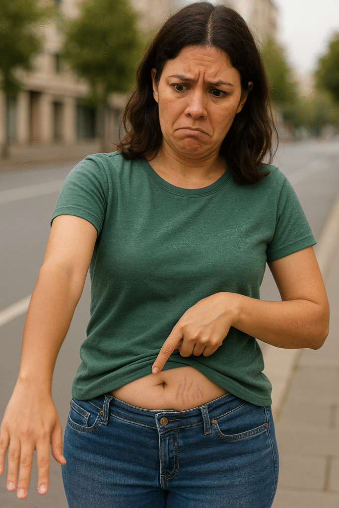 ⚫️ Stretch MarkBiasanya muncul setelah kehamilan atau perubahan berat badan drastis. Membuat kulit terlihat pecah dan tidak merata.